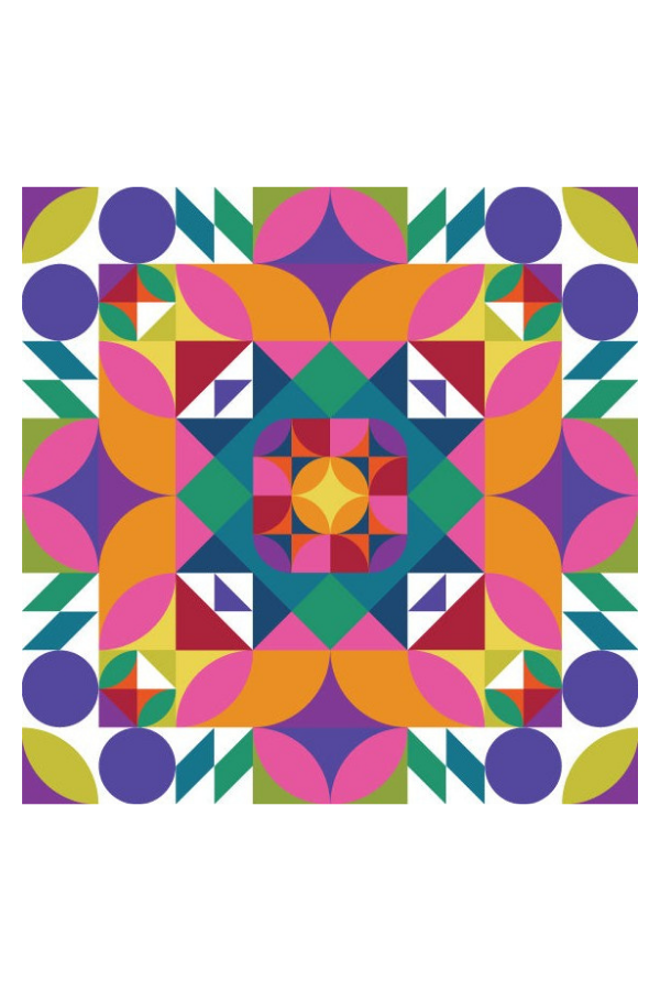 The way this pattern was designed, possibilities bloom before your very eyes as you rotate your pieces to see a wide variety of final design options. It’s like a colourful kaleidoscope. Recommended for Intermediate to Advanced level quilters.